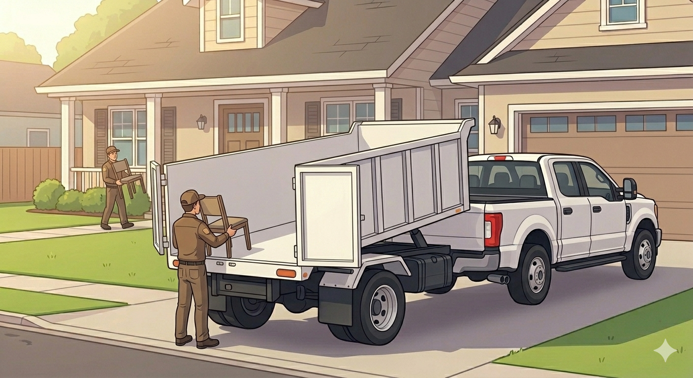 Common examples include shed removal, playset removal, cabinet tear-outs, flooring tear-outs, and small structure removal.